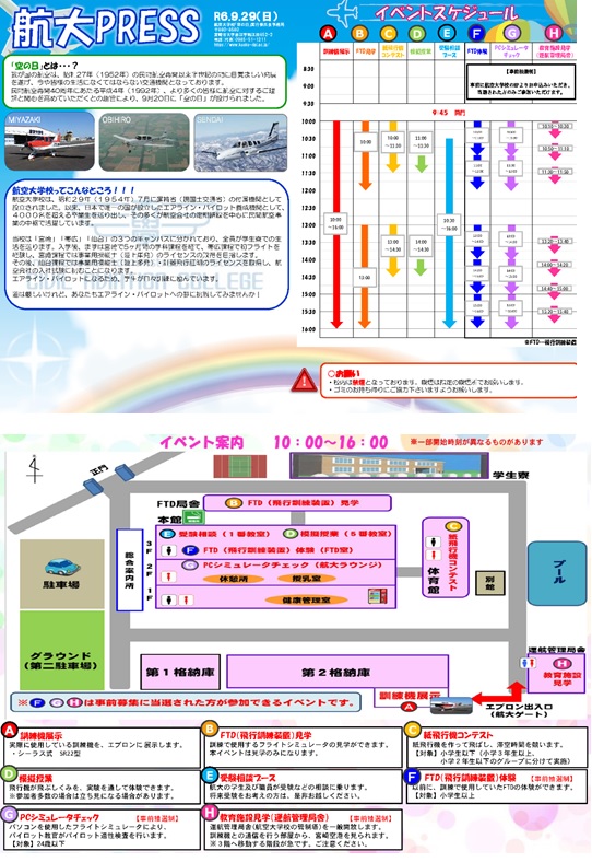 | 会場:航空大学校 住所:宮崎県宮崎市大字赤江字飛江田652番地2 地図:https://www.kouku-dai.ac.jp/08_access/index.html ※駐車場が満車の場合は、舗装されていないグラウンドに駐車いただきますので、予めご了承ください。 |